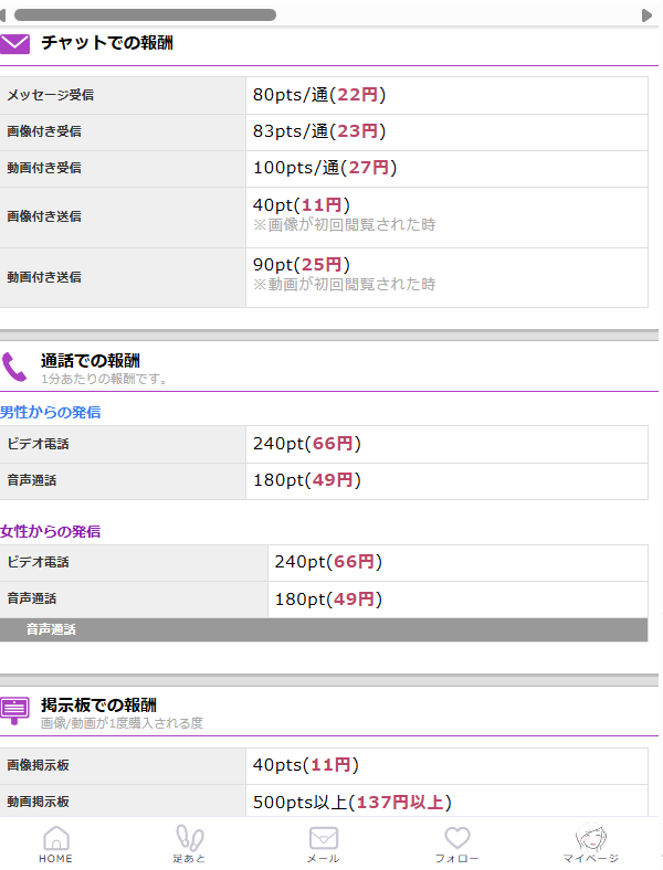 ファムの報酬は、1分あたりの通話時間に応じて発生します。平均的な報酬は1分あたり49円〜66円ほど。1日2〜3時間の稼働でも、月10万円以上を目指せる可能性があります。